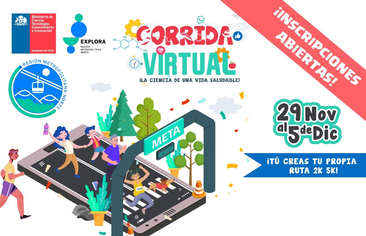 La corrida “La CIENCIA de una vida saludable”, liderada por Explora RM Norte, ACCDiS y la Universidad de Chile, tiene como objetivo promover, por medio de la Ciencia, Tecnología, Conocimiento e Innovación, el autocuidado para prevenir enfermedades crónicas. La iniciativa es parte de un programa de actividades de divulgación científica y cierra con la corrida virtual que se realizará desde el domingo 29 de noviembre al sábado 5 de diciembre, un evento deportivo masivo y gratuito que, por su formato, se podrá realizar con todas las precauciones sanitarias.