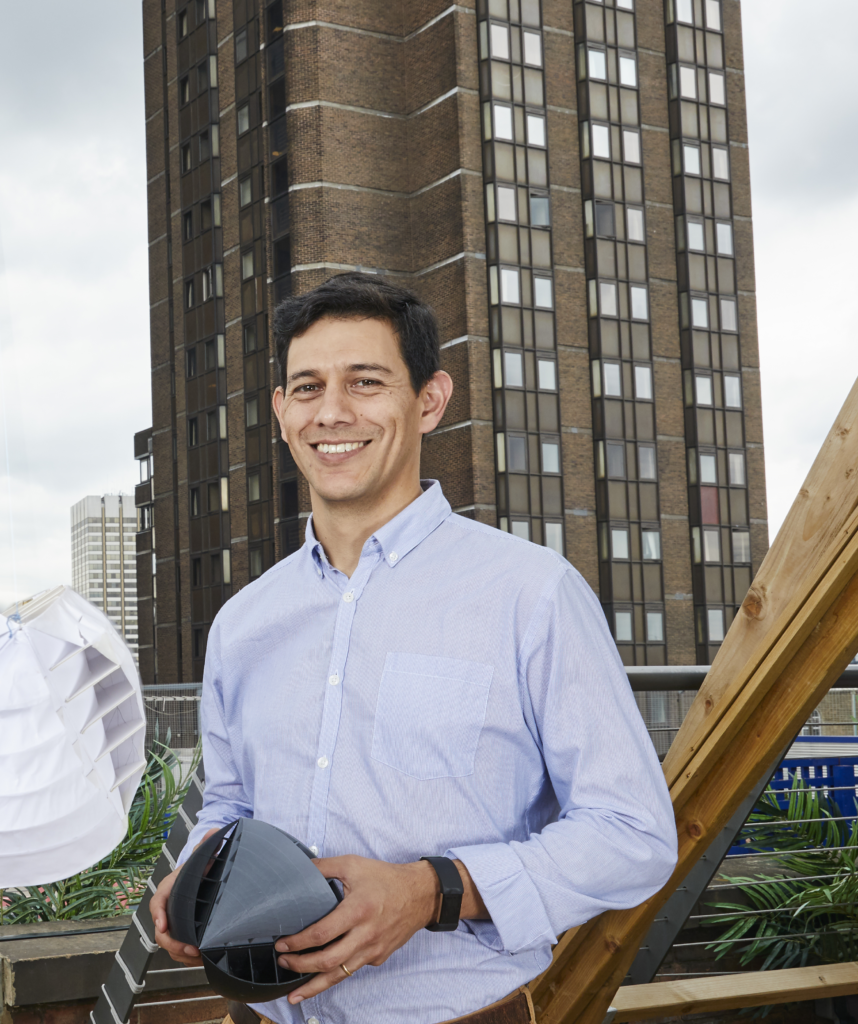 El proyecto, creado en 2018 durante su estadía en Inglaterra, consiste en una turbina que permite generar energía utilizando las distintas direcciones de los vientos. “Las turbinas existentes están diseñadas para trabajar con viento horizontal. En las ciudades, el viento tiene muchos obstáculos, por lo que se generan ráfagas en todos los sentidos: ascendentes, descendentes, diagonales y horizontales, espirales, etc. La turbina O-Wind es capaz de aprovechar los vientos en distintas direcciones para la generación de energía, siendo la primera en lograrlo”, explica Orellana.