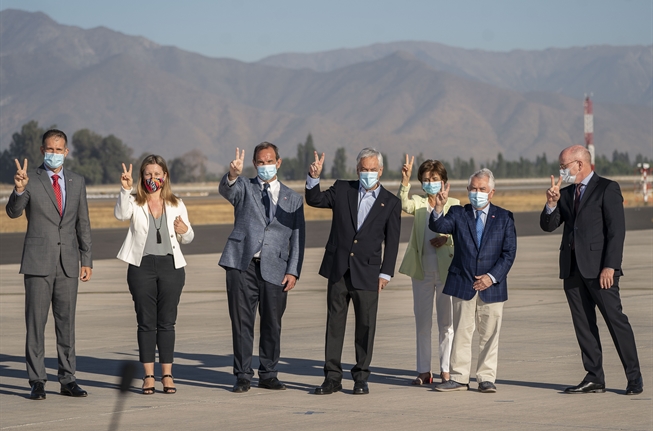 “Van a permitir dar tranquilidad y proteger la salud y la vida de chilenos que están hoy día muy esperanzados”, remarcó el Mandatario en el Aeropuerto Arturo Merino Benítez, acompañado de los Ministros de Salud, Enrique Paris, y de Relaciones Exteriores, Andrés Allamand.
