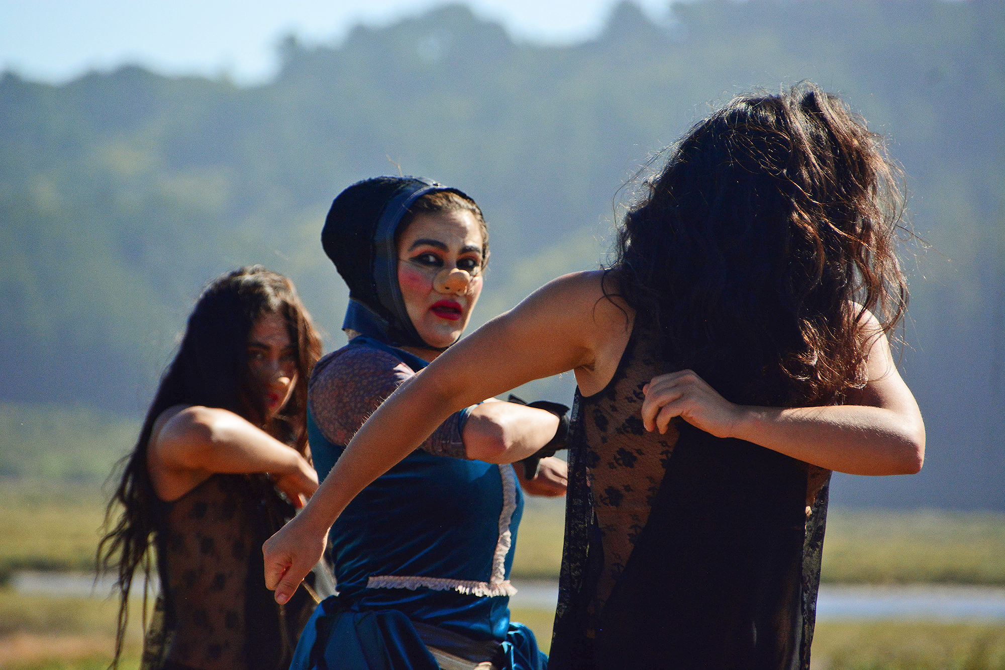 Dirigida por el creador escénico Pablo Villablanca y con coreografías de la bailarina “Chispi” Torres, reconocida intérprete y docente de danza tribal y de la India, completan el elenco las intérpretes en danza Flor Correa y Camila Aravena, y en la composición musical, Carlos Stockle. Con una mirada acuciosa del presente, el núcleo escénico trabajó todo el año 2020 en modalidad de residencias creativas, donde lo sonoro y lo visual fueron adquiriendo relevancia de la mano del trabajo de Luis Almendra y el realizador audiovisual Antu Miranda. Efectivamente, la obra tiene un correlato digital, desde el lenguaje de videodanza, que permitirá activar la circulación de la obra en contexto de urgencia sanitaria.