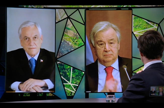 Actualmente, Chile mantiene el rol de Presidencia de la COP25 hasta noviembre de este año, y ha realizado un llamado a todos los países a inscribir nuevos compromisos de ambición en materia de cambio climático. Además, en el contexto de las Contribuciones Nacionalmente Determinadas (NDC), el año pasado el Gobierno presentó un ambicioso Plan de Adaptación que cubre 11 sectores de la economía. “Hoy estamos trabajando para incluir la adaptación en nuestra Estrategia Climática a Largo Plazo, que presentaremos en Glasgow durante la COP26”, explicó el Jefe de Estado.