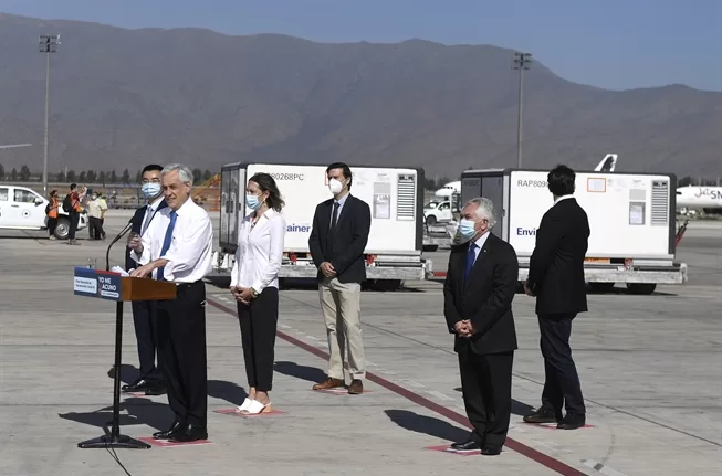 El Presidente de la República, Sebastián Piñera, recibió este jueves el primer cargamento de casi 2 millones de dosis de Sinovac contra el Covid-19 y anunció el inicio de la vacunación masiva a partir de la próxima semana.