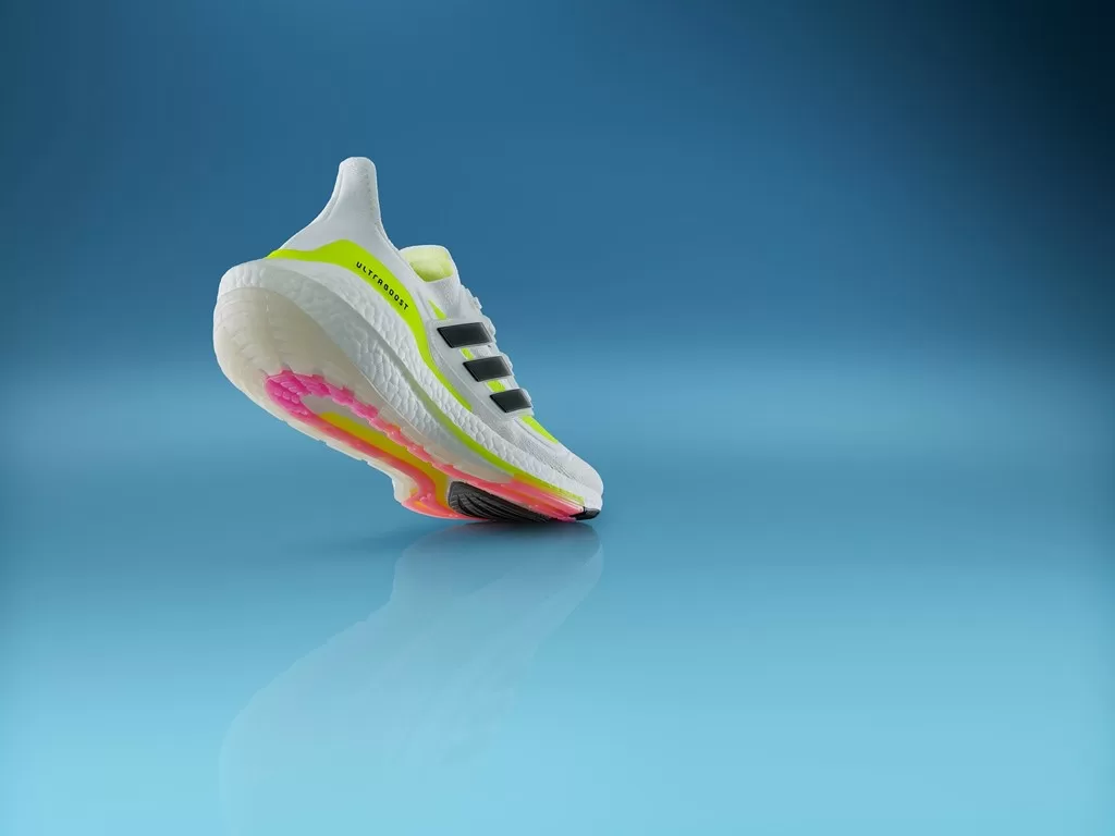 Las ULTRABOOST 21 se lanzarán a nivel mundial, el 4 de febrero de 2021 y estarán disponibles en un vibrante color blanco y amarillo fluorescente, que deja al descubierto la idea de explosión de energía.