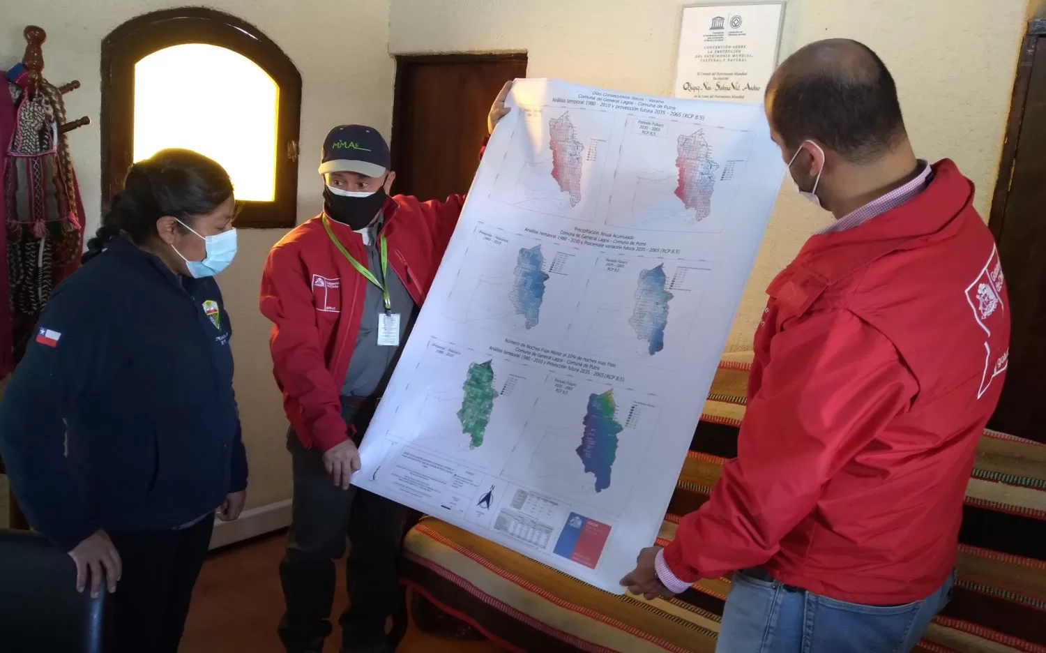En este contexto, Naranjo se trasladó hasta las localidades de Putre y Visviri, donde se reunió con la alcaldesa de Putre, Maricel Gutiérrez Castro y el alcalde subrogante de General Lagos, Miguel Covarrubias Lara, respectivamente, para hacerles entrega de este importante material técnico, que les aportará la información necesaria respeto a los riesgos que enfrentarán ambas comunas durante los próximos 35 años, asociadas al cambio climático.