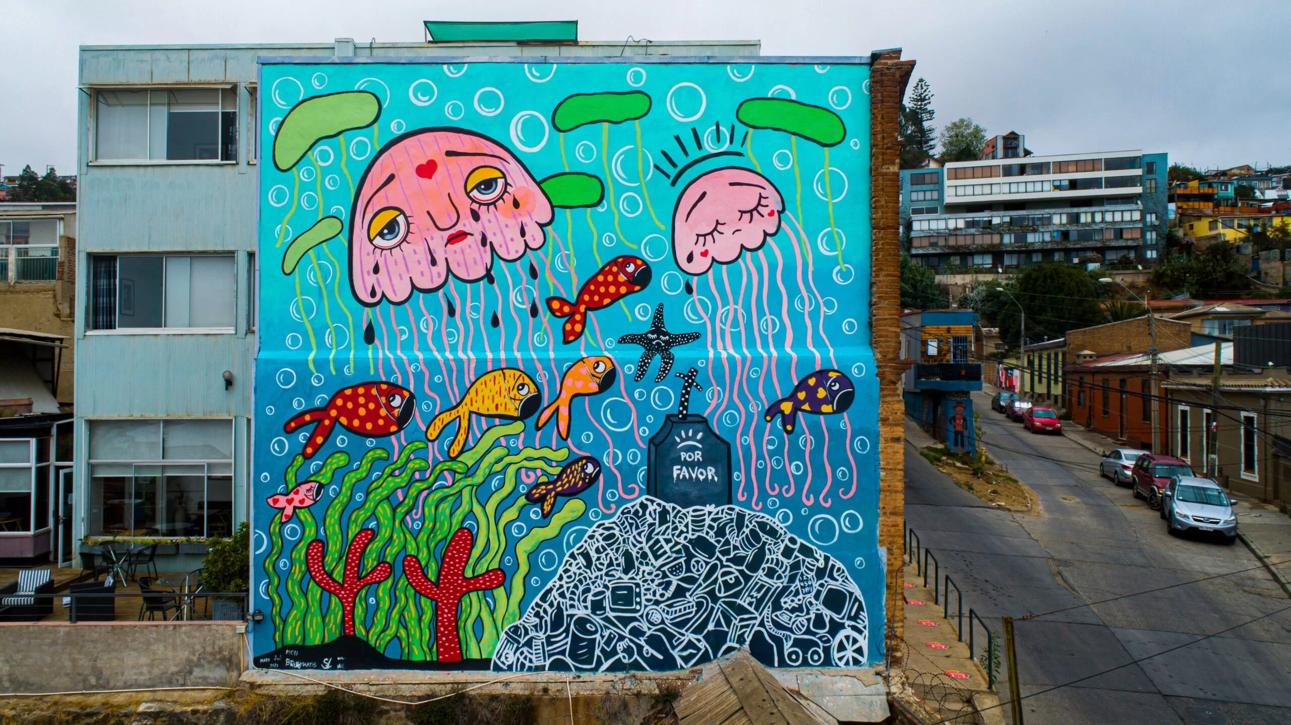 El mural, que también se transforma en un aporte al arte urbano de Valparaíso, ya se encuentra totalmente terminado y puede ser visto en la calle José Joaquín Pérez 173, Cerro Cárcel, en una de las paredes laterales del Hotel Ultramar. José Lozano, quien cedió el mural, consideró “de gran relevancia que se potencie el aspecto cultural y artístico de la ciudad porque la gran mayoría de los visitantes a Valparaíso vienen precisamente por esto. Además, decidimos ceder este muro porque tiene una temática de la cual nadie podría estar en desacuerdo como es detener la contaminación del mar por plásticos”, concluyó.