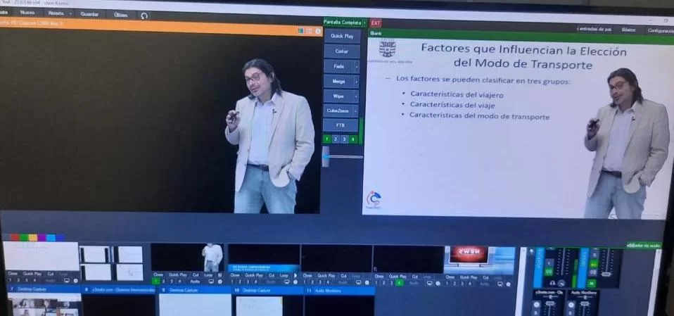 El montaje del set virtual, la coordinación con los recursos informáticos y transmisión, estuvo a cargo de los funcionarios del DICA, Juan Carlos Montero y Víctor Vejar, quienes pusieron al aire sesiones de la asignatura de Análisis de Sistemas de Transporte, a cargo del propio Dr. Patricio Álvarez.