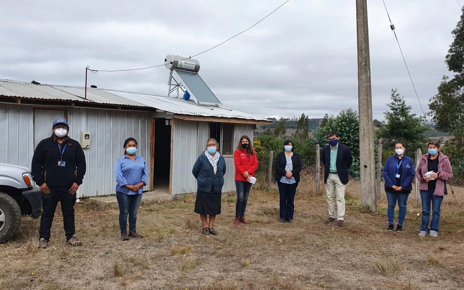 Hasta ese sector llegó la seremi de Medio Ambiente, Paula Castillo acompañada del subdirector de CONADI, Marcelo Huenchuñir y de los profesionales del departamento de Gestión Ambiental de la municipalidad de Nueva Imperial para ver en terreno la implementación de la iniciativa denominada: “aprovechando la energía limpia del sol para calentar nuestras aguas”.