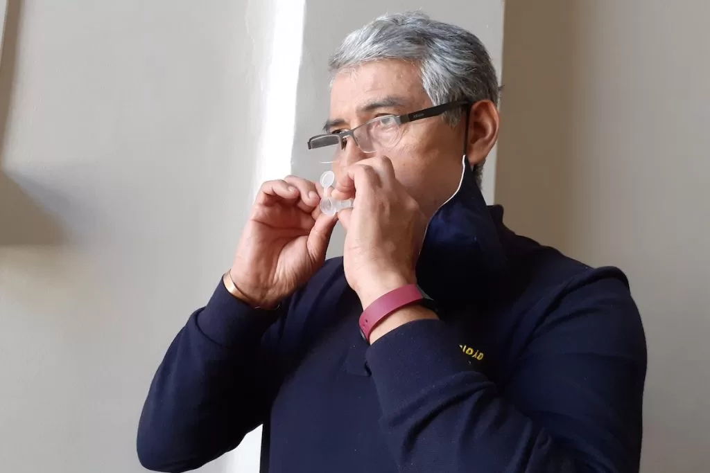 La técnica de la prueba de aire espirado detecta la presencia del virus en pocos minutos. Se trata de una tecnología similar a un alcotest, en la que los usuarios deben soplar por un tubo y luego se les sindica positivos o negativos para SARS-Cov-2 mediante el análisis físico de la muestra.