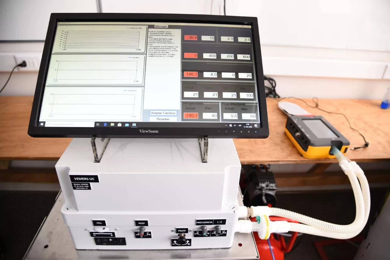 Además, cuenta con un sistema computacional que entrega gráficos en tiempo real de presión, flujo y volumen, así como mensajes de alerta ante cualquier incidencia. En esta última fase del desarrollo participó también un equipo de profesionales altamente calificados, entre ellos los ingenieros Felipe Castro, Tomás Sánchez y Braulio Sepúlveda.