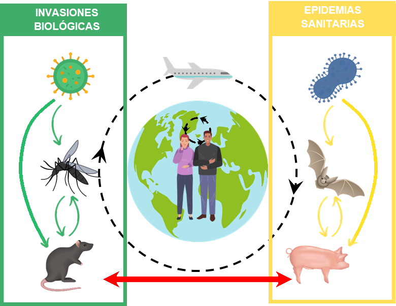 La aparición y propagación de diversos patógenos infecciosos humanos y el desarrollo de pandemias, como la del Covid19, son fenómenos que tienen mucho en común con las invasiones biológicas: se relacionan a menudo con las mismas causas y muestran características similares. Ambos representan procesos en aumento debido a la globalización, tienen una rápida reproducción y capacidad de dispersión, proliferan en condiciones de degradación ambiental y tienen mayor impacto en comunidades con las que nunca antes estuvieron en contacto.