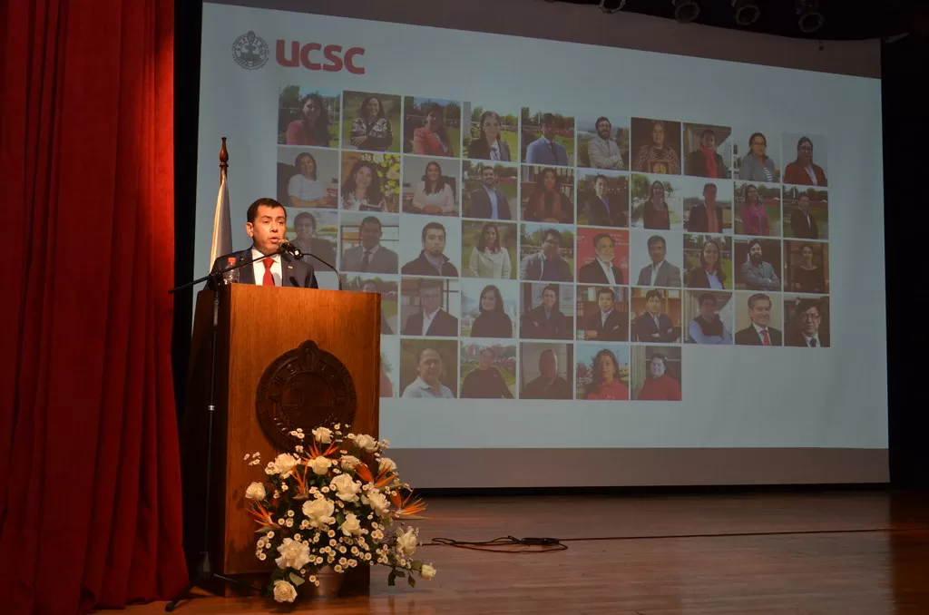 “He sido testigo del crecimiento sostenido de mi Alma Mater, de nuestra querida UCSC, transformándose en una casa de estudios compleja e inclusiva, abierta al mundo y a la comunidad, reconocida y recientemente acreditada por 5 años con investigación. Gracias por la herencia que recibo de mis predecesores, quienes dedicaron tiempo, amor y conocimientos, en especial al Rector Christian Schmitz y su equipo con quien compartí estrechamente estos últimos años en el Consejo Superior de la Universidad y en estas últimas semanas en el traspaso del cargo. Los logros alcanzados me incentivan a tener grandes y ambiciosas aspiraciones para dar continuidad al proyecto educativo, generando los cambios que el momento y las circunstancias requieren, pero siempre con equilibrio para mantener lo ya logrado y nuestros valores tan representativos e intactos”, señaló Mellado.