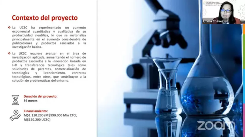 La iniciativa “Fortalecimiento del Ecosistema de Innovación basada en I+D y Transferencia Tecnológica de la UCSC” tiene una duración de tres años, y su principal objetivo es fortalecer las capacidades de gestión de la innovación basada en investigación y desarrollo (I+D), transferencia tecnológica y competitividad nacional e internacional de la UCSC, con énfasis en las áreas emergentes de energía y recursos hídricos.
