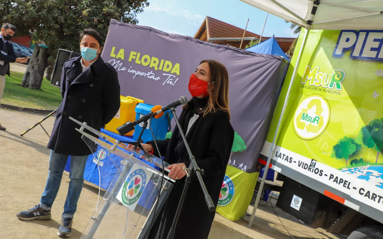 - La titular de Medio Ambiente, junto al alcalde de La Florida, Rodolfo Carter, detalló que la ley del reciclaje obligará a las empresas a financiar nueva infraestructura en más de 260 comunas de Chile para facilitar los hábitos sustentables de las personas.