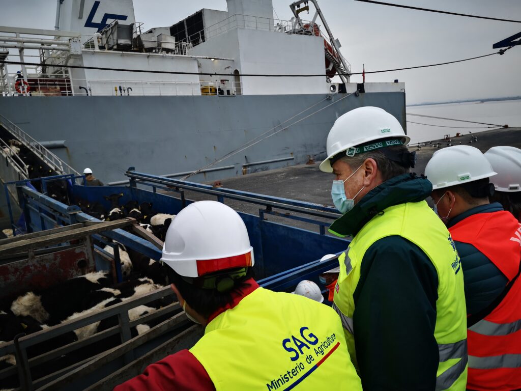 Tras una cuarentena sanitaria de 30 días, 3.830 vaquillas en pie fueron embarcadas con destino a China en el puerto Talcahuano Terminal Portuario S.A, actividad supervisada los Seremis de Agricultura, Francisco Lagos, y de Economía, Mauricio Gutiérrez; el Director Regional del SAG, Iván Ramírez; el gerente general de Talcahuano Terminal Portuario S.A., Pablo Passeron; la gerenta de Desarrollo y Sostenibilidad de la Empresa Portuaria Talcahuano – San Vicente, Guacolda Vargas; y el representante de la exportadora United Chile Export, inc., Felipe Silva.