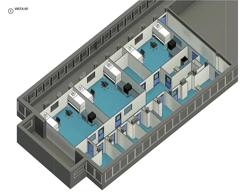 También se considera la instalación de accesos restringidos mediante tecnología de ingreso y cámaras de seguridad, y zonas para el cambio de ropa previo a ingresar al área limpia, una “burbuja” climatizada, con presión negativa –para impedir que nada salga cuando se abren las puertas- y cuyos respectivos equipos estén instalados sobre el techo del edificio, espacio al cual se accede desde fuera de las dependencias, de manera de facilitar su mantención sin que los operarios deban ingresar al laboratorio.