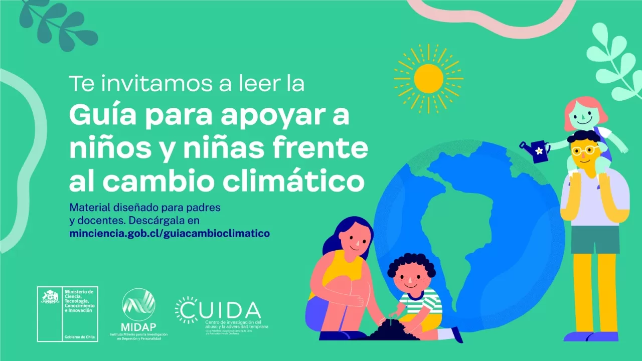 La publicación desarrollada en colaboración con el Centro de Investigación del Abuso y la Adversidad Temprana (CUIDA UC) y patrocinada por el Instituto Milenio para la Investigación de la Depresión (MIDAP), entrega 10 consejos a padres, madres y profesores para acompañar a los niños y niñas en el proceso de informarse y comprender el cambio climático, cuidando sus emociones desde una perspectiva de agencia frente a esta crisis, sin transmitir la idea de un futuro catastrófico.