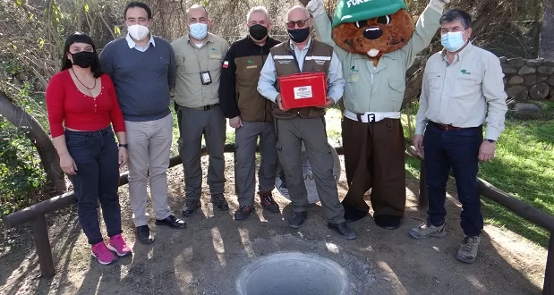 En la “cápsula del tiempo”, funcionarios de CONAF pusieron un pendrive con información, videos y fotografías sobre la flora, fauna y características territoriales del Parque Nacional La Campana. Además, incluye registros históricos de guardaparques y un mensaje de estos trabajadores para las nuevas generaciones.
