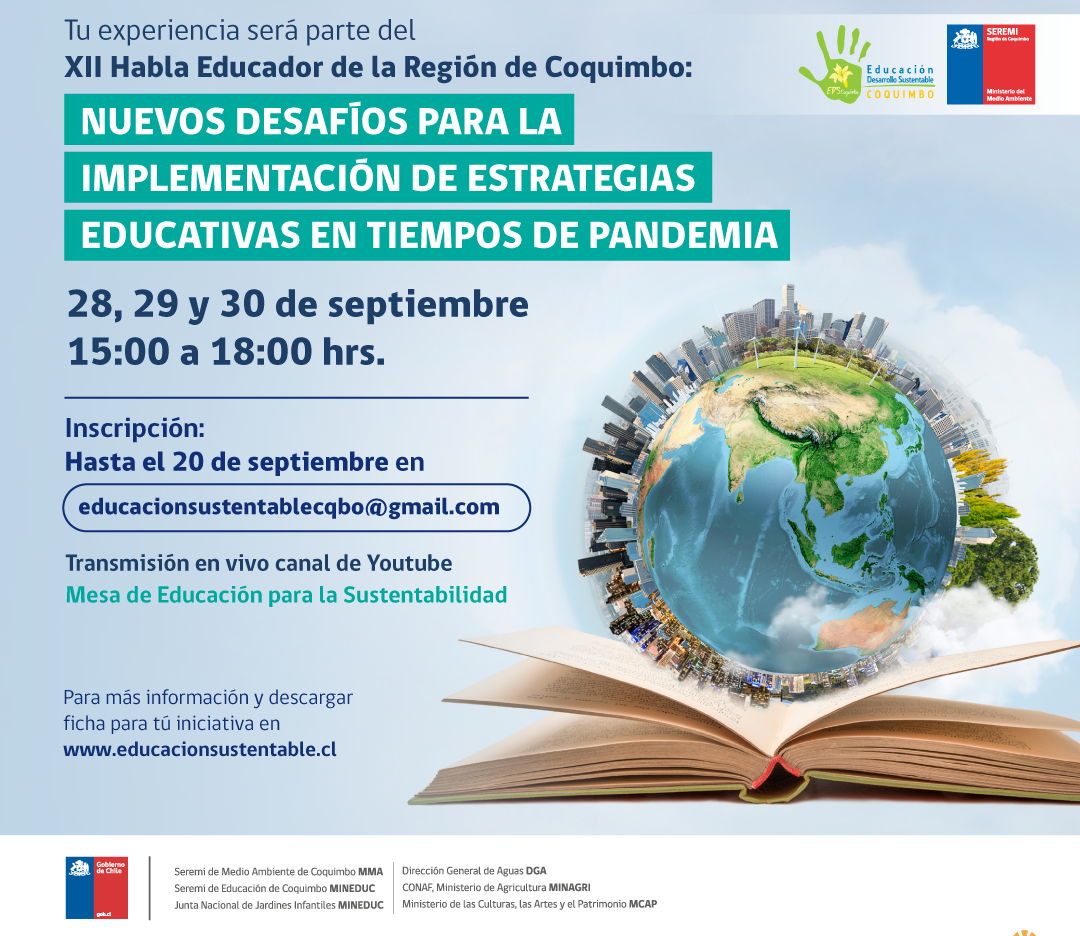El encuentro “Décimo Segundo Habla Educador de la Región de Coquimbo: Nuevos Desafíos para la Implementación de Estrategias Educativas en Tiempos de Pandemia”, presentará 10 experiencias regionales de comunidades educativas, que permitirán dialogar sobre el rol de la educación ante los diversos problemas ambientales y climáticos que están afectando el patrimonio natural de la región y a sus comunidades.