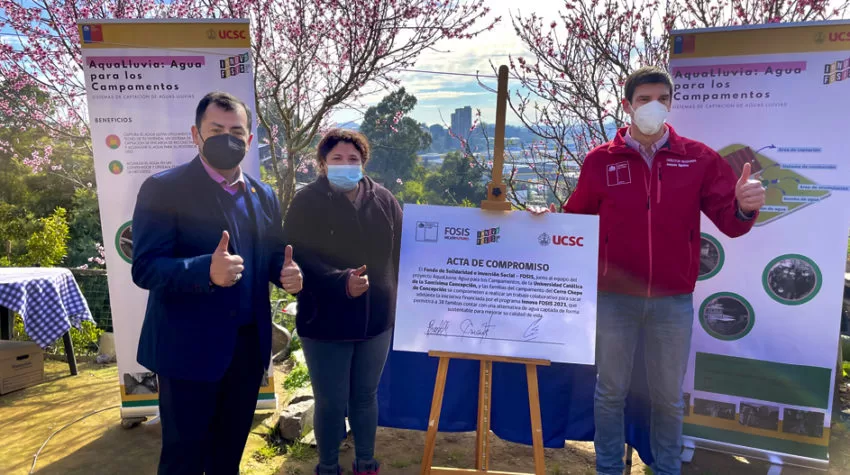 El acceso al agua es una de las dificultades que viven diariamente los vecinos del campamento Cerro Chepe, de Concepción, quienes estuvieron presentes en la ceremonia de lanzamiento del proyecto “Aqualluvia: Agua para campamentos”, que ejecutará el Centro Regional de Estudios Ambientales (CREA) de la UCSC con financiamiento Innova Fosis 2021.