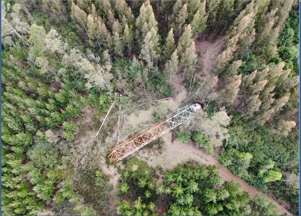 En un sector rural de difícil acceso en Contulmo – área limítrofe con la comuna de Lumaco-, desconocidos derribaron una torre de aproximadamente 30 metros de altura, destinada a la vigilancia para la prevención de incendios rurales y que se aprestaba para ser utilizada en la temporada 2021-2022.