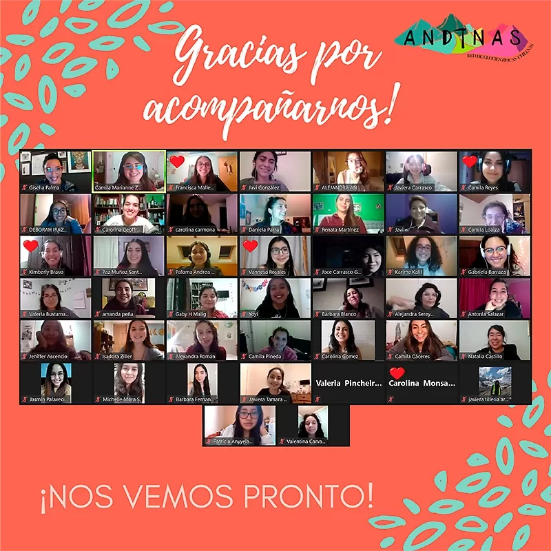El núcleo fundador y coordinadoras generales del proyecto Andinas está conformado por Daniela Parra, Francisca Mallea, Gisella Palma, Alejandra Cevo, Paz Muñoz, Vannesa Rosales, Camila Zúñiga, Amanda Peña, Gabriela Barraza.