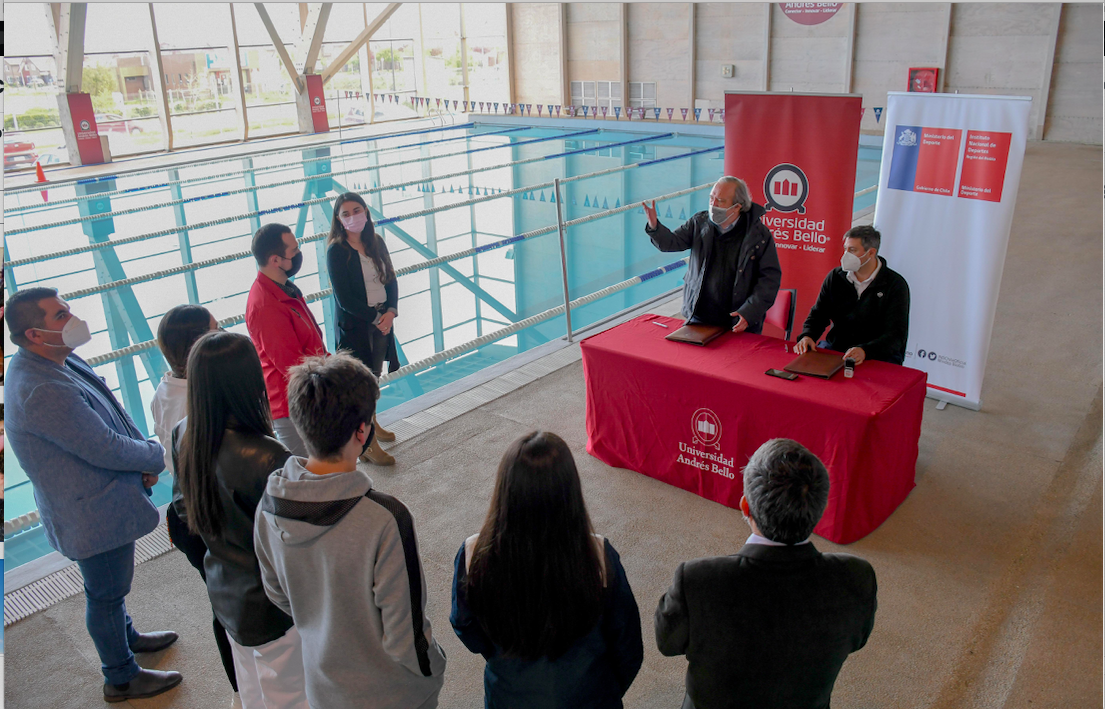 A través de un convenio de colaboración las instituciones se comprometieron a trabajar en la promoción de la actividad física y el deporte desde distintos frentes. La Universidad Andrés Bello facilitará sus instalaciones deportivas, incluyendo la piscina semiolímpica, para el entrenamiento de deportistas locales.