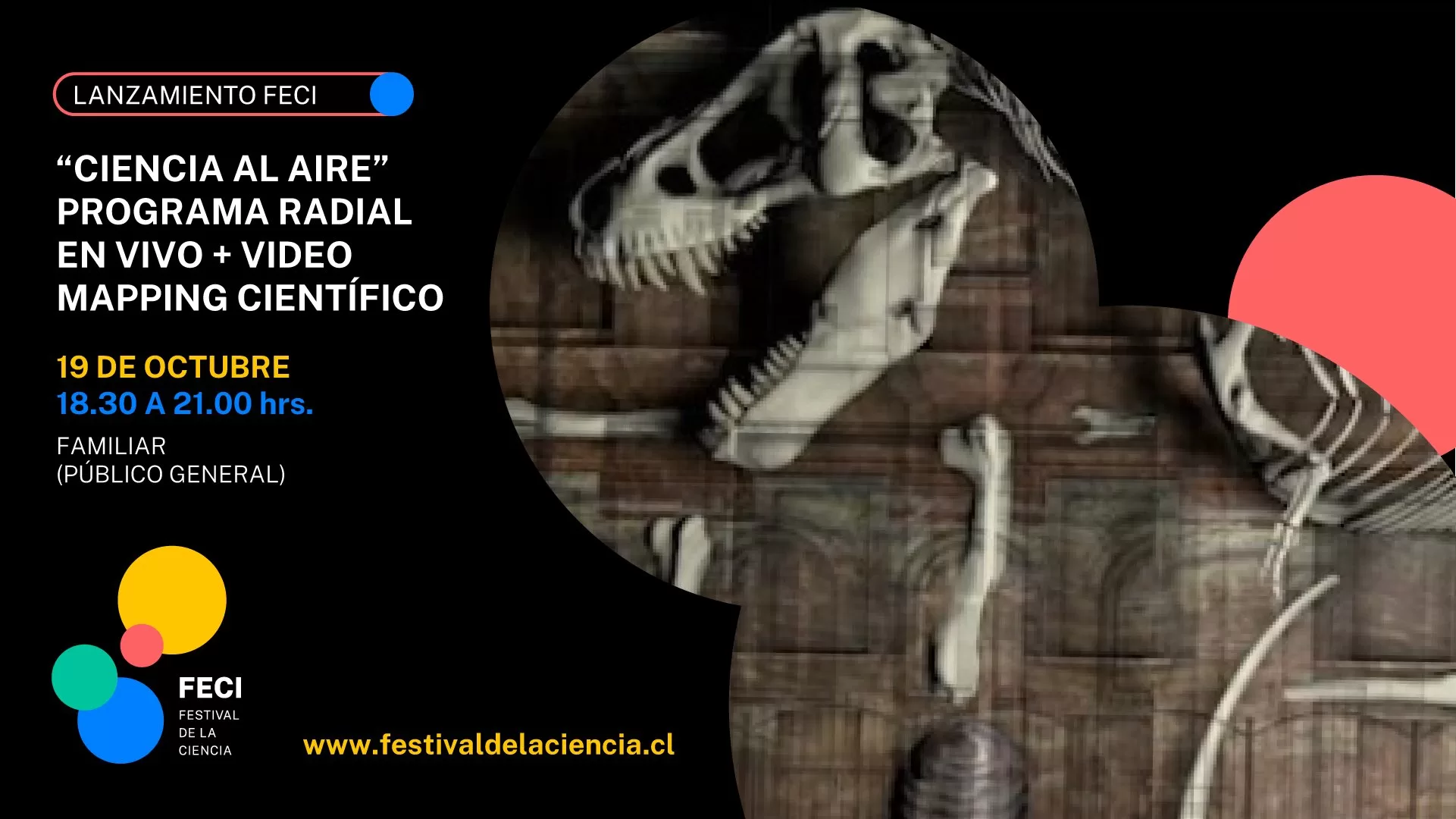 Con un espectáculo audiovisual de video mapping gratuito que hará un recorrido a través de los mayores hitos de la ciencia, desde el origen del universo hasta los desafíos que enfrentamos por el cambio climático, se dará inicio hoy a las 20:30 horas al Festival de la Ciencia (FECI) 2021, el mayor evento de divulgación científica a nivel nacional, que se extenderá hasta el próximo 24 de octubre.