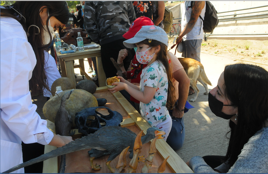 Uno de los destacados del fin de semana científico fue Dinosaurios en el parque, experiencia “prehistórica” con la que culminó oficialmente FECI 2021 y que trasladó un museo paleontológico itinerante con fósiles reales al Parque de la Familia. La intervención permitió a niñas, niños, adolescentes y adultos conocer de forma didáctica sobre el origen y evolución de las criaturas que habitaron alguna vez el país y del trabajo de los paleontólogos nacionales.