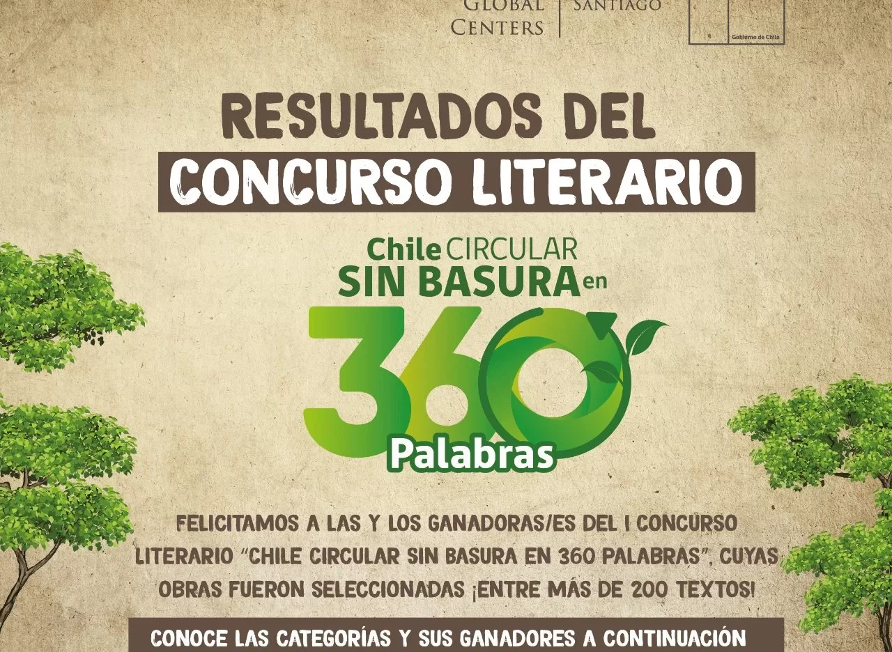 El Ministerio del Medio Ambiente y el Centro Global de la Universidad de Columbia dieron a conocer los resultados del I Concurso Infantil y Juvenil de Cuentos “Chile Circular Sin Basura en 360 Palabras” en el que participaron más de 200 niños y jóvenes de entre 7 y 18 años. El primer premio en la categoría Chungungo (7 a 10 años) recayó en el seudónimo de Amelia Trobel de Temuco, autora del cuento “Mi Abrigo Jorobado”; en la categoría Chinchilla (10 a 14 años), el ganador fue S. Onell de La Serena, autor del relato “360 y el Mundo se Acaba”. Finalmente, en el segmento Lagarto Gruñidor (15 a 18 años) la ganadora fue Tortuga Ninja de Iquique, con el texto “Sombrero a Orillas del Mar”.
