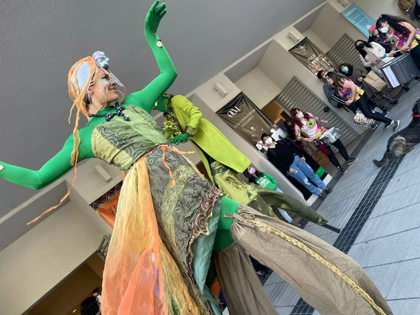 El espectáculo culminó, desafiando la curiosidad y las leyes de la física, con la presentación de danza aérea a cargo de Universo Aerial Dreams. Sostenidas sobre telas y trapecios las acróbatas realizaron una serie de movimientos de fuerza, flexibilidad y coordinación a más de 2 metros de altura, poniendo a prueba las capacidades humanas ante las leyes de la física.