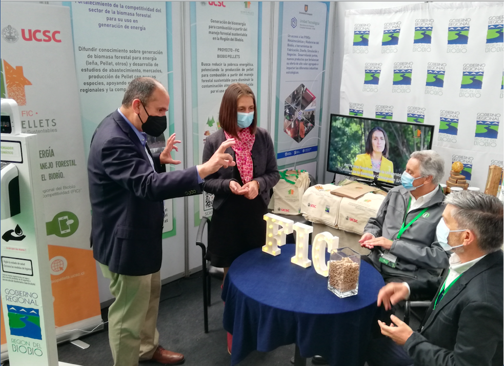 “Reactivación Verde: Bioeconomía y Sustentabilidad” fue el eslogan y eje principal de la edición XX de Expocorma, Feria Internacional de la Industria Forestal, de la Celulosa y el Papel organizada por la Corporación Chilena de la Madera y que se desarrolló en Coronel. El proyecto “Generación de bioenergía para combustión, a partir del manejo forestal sustentable”, iniciativa financiada por el Fondo de Innovación para la Competitividad del Gobierno Regional del Biobío y desarrollado en la Universidad Católica de la Santísima Concepción (UCSC), estuvo presente en la actividad en Stand del Gobierno Regional del Biobío, dedicado a proyectos FIC. En la primera jornada el proyecto FIC Biobío Pellets compartió el stand con el Instituto Forestal (INFOR), donde se presentaron los objetivos de ambos proyecto y los alcances en materia de calefacción domiciliaria a través de la producción de pellets.