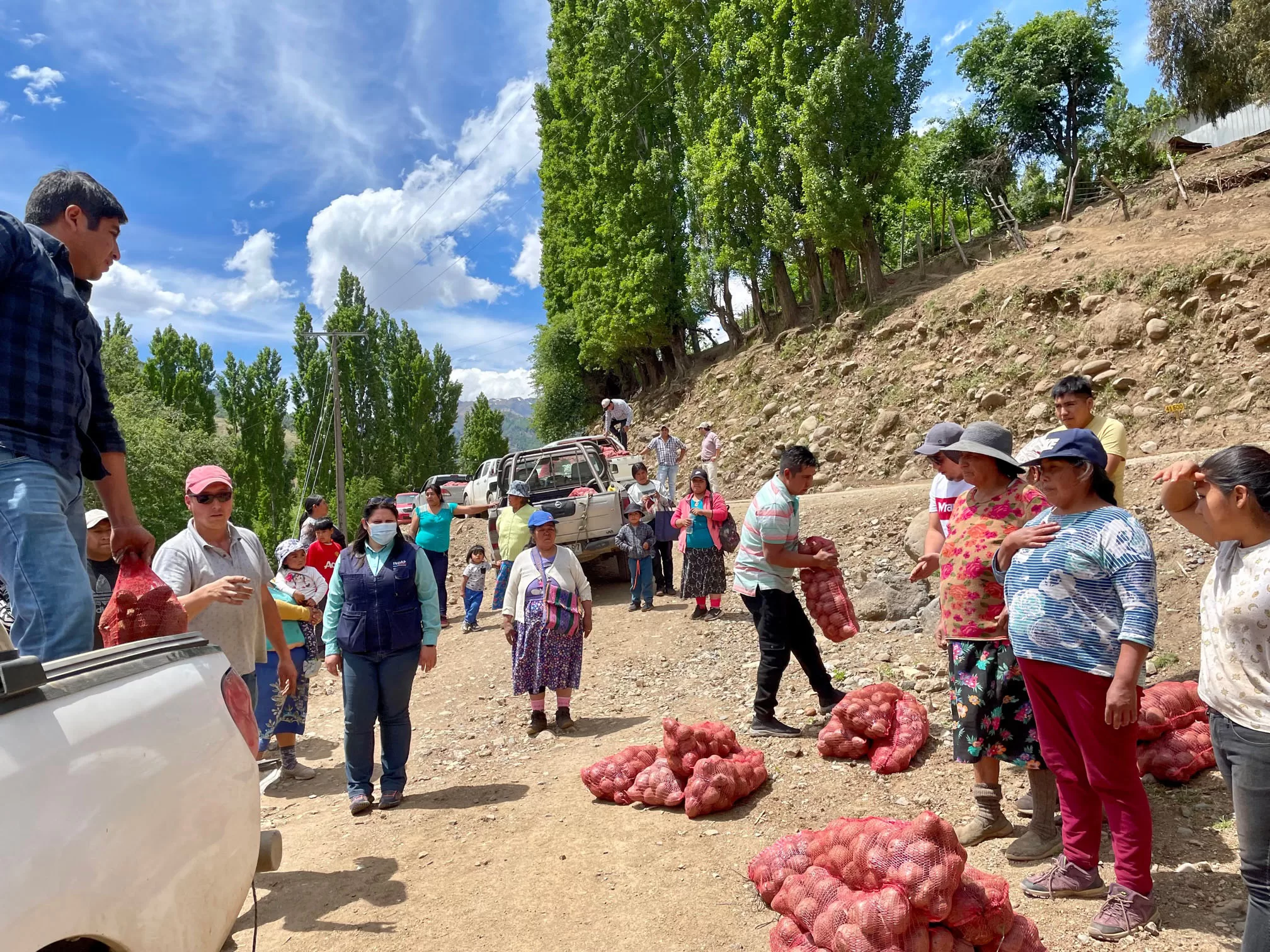 Agricultores de la “Cooperativa Mapuche Gente de la Tierra” de la comuna de Tirúa, donaron 6.500 kilos de papas de la variedad Patagonia Inia a pequeños agricultores de la comunidad pehuenche de Malla Malla en Alto Biobío.