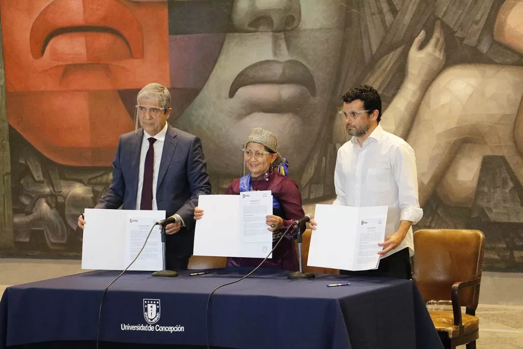 Con el imponente mural Presencia de América Latina de fondo, se realizó la firma del convenio colaborativo entre la Convención Constitucional y la Universidad de Concepción, que puso a disposición del órgano constituyente todas las capacidades técnicas y humanas de la casa de estudios penquista.