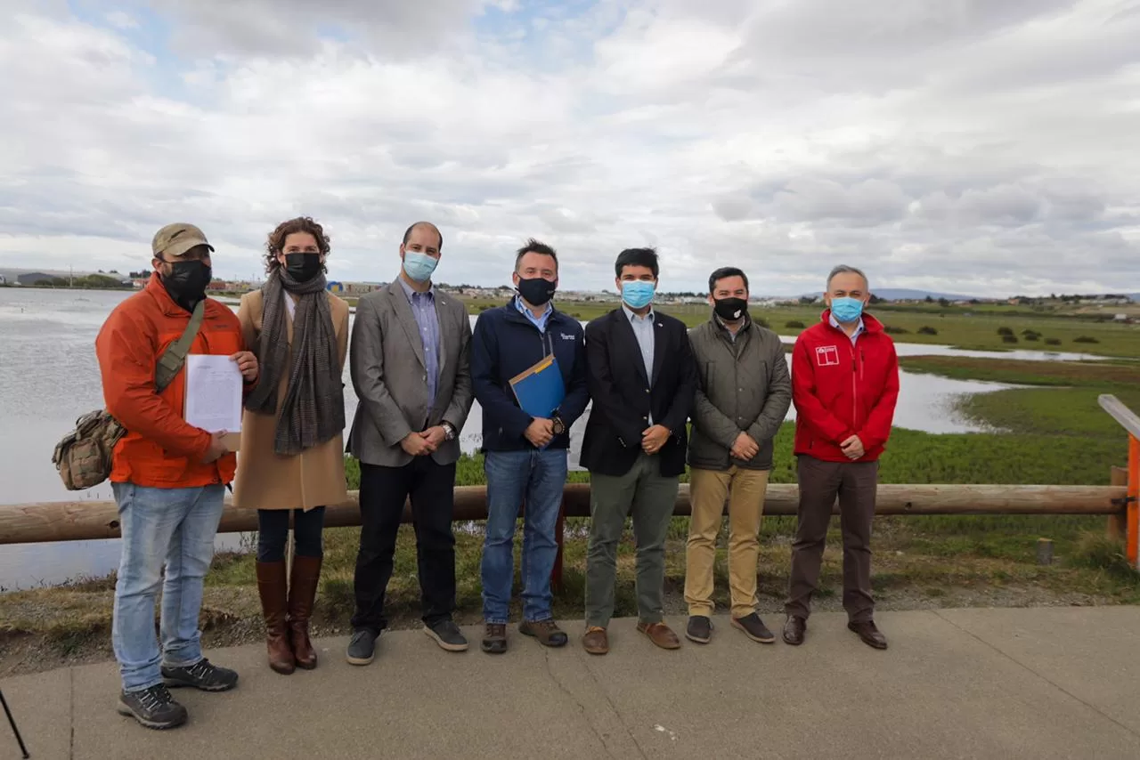 Este viernes, el ministro del Medio Ambiente, Javier Naranjo, junto al ministro de Bienes Nacionales, Julio Isamit, el Seremi de Medio Ambiente de la Región de Magallanes y de la Antártica Chilena, Carlos Olave, la Seremi de Bienes Nacionales, Francisca Rojas, y el alcalde de Punta Arenas, Claudio Radonich, entregaron a la comunidad la declaración del Humedal Urbano Tres Puentes.