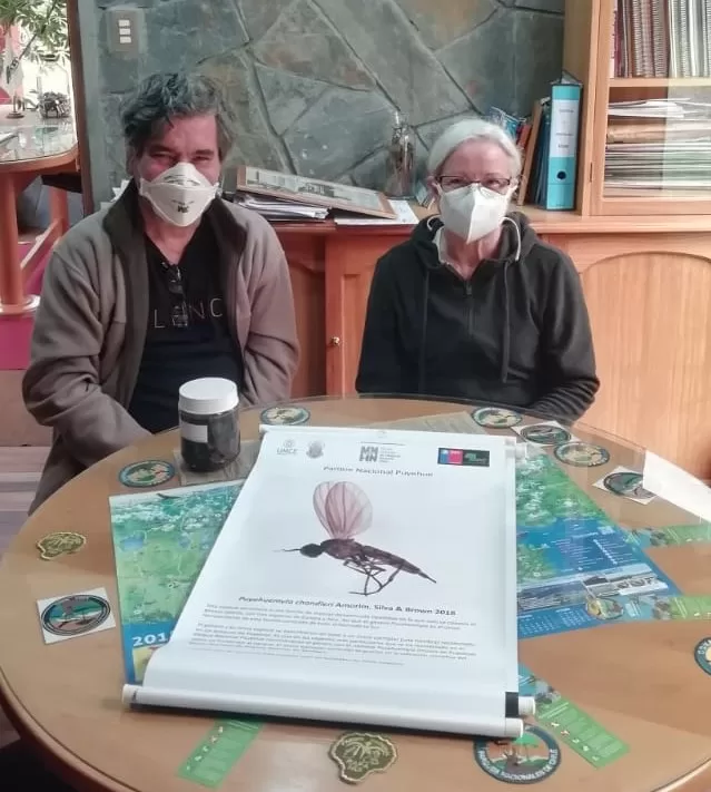 Dalton de Souza, Vera Cristina Silva y Brian Brown son parte de un equipo internacional de entomólogos que se encuentran en el Parque Nacional Puyehue y que desde 2011 vienen realizando expediciones y estudio de campo para relevar la diversidad de insectos en esta área silvestre protegida. Fue así como en 2018 descubrieron la mosca de Puyehue, o Puyehuemyia chandleri (Silva & Brown 2018), la cual recibe su nombre en honor al parque nacional.