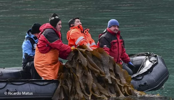 “Los bosques de huiro en esta zona son abundantes, se distribuyen de forma masiva. Aparentemente son los organismos dominantes en el sistema acuático. Macrocystis pyrifera es un alga muy adaptable, que puede vivir en muchos ambientes y puntualmente aquí pudimos verla crecer en lugares con mucho hielo glaciar, lo que antes se creía que no era posible. Se han adaptado muy bien”, explica el Dr. Gómez.