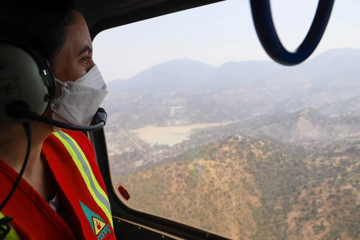 La ministra de Agricultura, María Emilia Undurraga, llegó hasta la comuna de Machalí para constatar en terreno el trabajo que están llevando a cabo las brigadas de la Conaf y los distintos actores locales frente a los incendios que afectan a las comunas Machalí y Requínoa.
