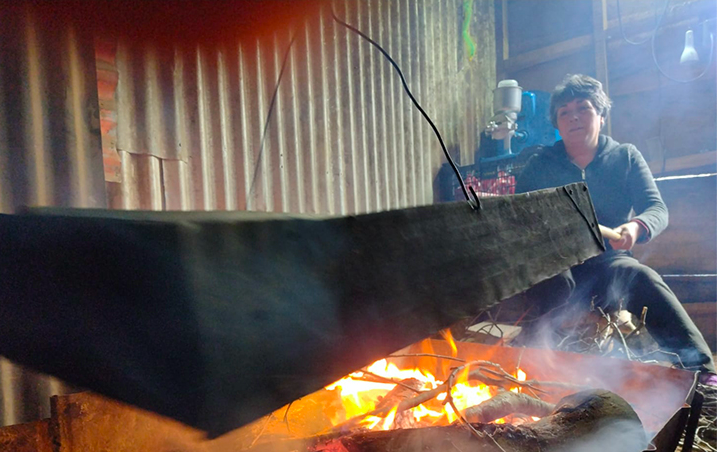 Otro de los capítulos de esta travesía se refleja en las palabras de Paula Mariángel, antropóloga e investigadora del proyecto, quien comparte apreciaciones sobre la visita a Patricia Pino de la comuna de Tucapel: “fuimos dulcemente recibidas por Patricia y parte de su familia. Llegamos a una casa de madera que señala “Delicias de mi Tierra”, en medio del bosque nativo, que antaño se cubría de nieve durante el invierno. Nuestra anfitriona nos esperó con una deliciosa cazuela de cerdo, ahumado por ella, con chuchoca (maíz cocido, secado al sol y molido). Llegando la tarde nos mostró la forma en que prepara el café de trigo en callana, mientras nos contaba historias de sus abuelos”.