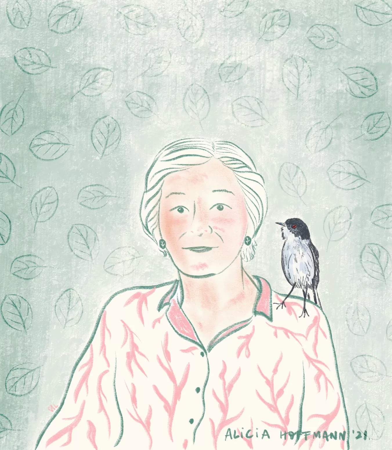 Desde hace varios años, un ave de plumaje gris y ojos rojos, visita el jardín de Alicia Hoffmann en la Comunidad Ecológica de Peñalolén. Proveniente de un sitio desconocido, el pájaro se detiene sobre un poste y luego retoma su vuelo. Así lo recuerda la botánica chilena, mientras pone una hoja sobre la mesa que retrata la imagen de este misterioso visitante.