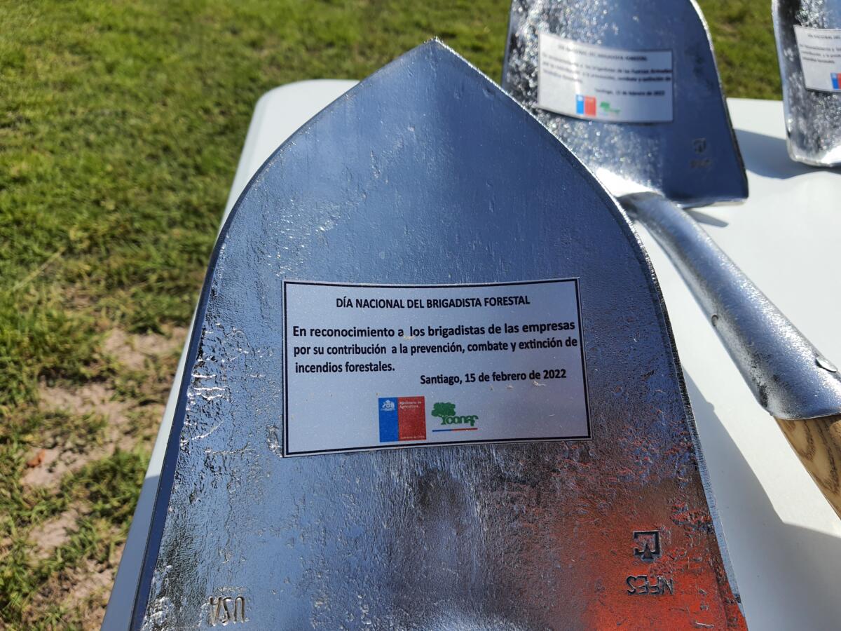 El ministro de Defensa fue el encargado de entregar el reconocimiento consistente en “una pala de trabajo simbólica” a la delegación de brigadistas forestales que asistieron en representación de los 3.500 que trabajan para empresas socias de la Corporación Chilena de la Madera -Corma-.