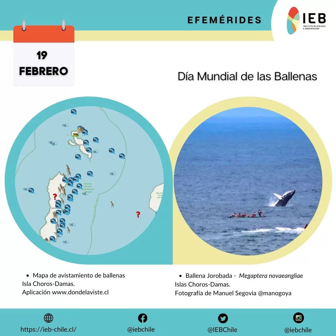 El 19 de febrero, conmemoramos el Día Mundial de las Ballenas. En esa fecha del año 1986, la Comisión Ballenera Internacional (CBI) prohibió la pesca industrial de estos cetáceos a escala global, debido a la caza indiscriminada y extinción de algunas especies. En Chile, en el año 2008 se estableció una prohibición permanente de captura de todas las especies de cetáceos en aguas jurisdiccionales del país, se declaró monumento natural a todos los cetáceos en Chile, y la Ley de Protección a los Cetáceos (Ley No 20.293) declaró las aguas bajo jurisdicción nacional como zona libre de caza de cetáceos. Ya en el año 2011, se promulgó el reglamento general de observación de mamíferos, reptiles y aves hidrobiológicas y del registro de avistamiento de cetáceos (Decreto Supremo N° 38), en el cual se hace hincapié a la velocidad y dirección de acercamiento de las embarcaciones a los cetáceos, el cuidado y conocimiento del comportamiento de los animales, en especial si existen crías y la responsabilidad de los guías, patrones y turistas en la observación y registro.