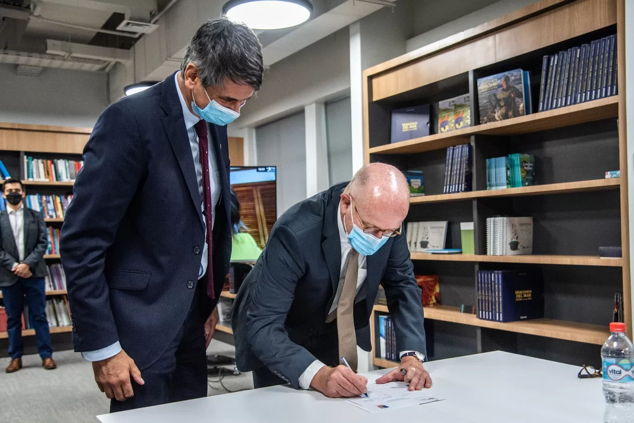 El grupo de nuevos firmantes estuvo encabezado por los embajadores de Francia, Pascal Teixeira da Silva, y Alemania, Christian Hellbach, quienes acompañaron a diferentes representantes del sector privado, academia e investigación de sus respectivos países, como la empresa de tecnología Siemens (Energy y Stiftung Latinoamérica), la compañía multinacional francesa Veolia, la organización alemana Fraunhofer, el Servicio Alemán de Intercambio Académico, entre otros.
