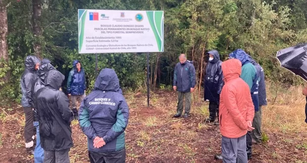 Por su parte, Pamela Moreno, jefa del departamento de Bosque y Cambio Climático de CONAF Los Ríos, sostuvo que “como CONAF desde hace dos años que estamos rescatando todos los ensayos y parcelas permanentes que estableció don Claudio hace más de 25 años. En ese trabajo nos encontramos con parcelas permanentes de un relicto de un bosque nativo del tipo forestal Siempreverde, el cual no podía llevar otro nombre que el de Claudio Donoso Zegers, razón por la cual este homenaje, donde quisimos reconocer y destacar su aporte y contribución en materias de investigación aplicada en bosque nativo”.