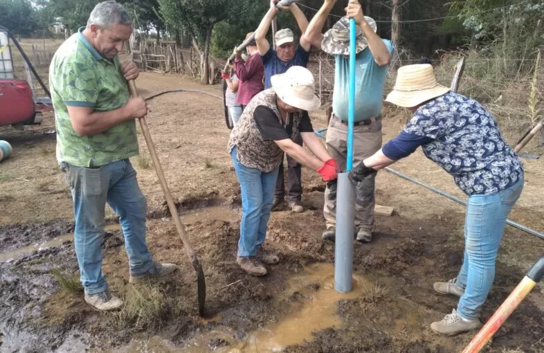 Mariela Sanhueza, oriunda del sector Casa Blanca, comuna de Quirihue, en Ñuble, explica que, en la primera jornada ella pudo capacitar a 7 vecinos del sector y que hoy, con la ayuda de una máquina pesada, “estamos construyendo un tranque que tendrá capacidad para 300 metros cúbicos de agua y va beneficiar a 14 personas del sector” manifiesta.