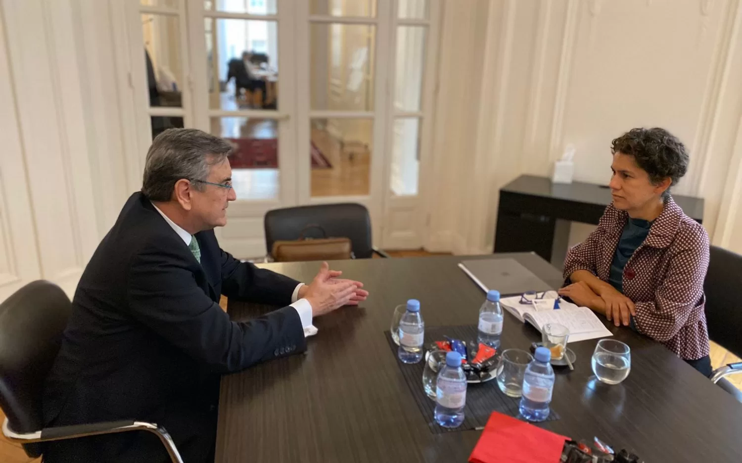 Como parte de su visita a París, la ministra del Medio Ambiente, Maisa Rojas se reunió esta mañana con el Director de Medio Ambiente de la Organización para la Cooperación y Desarrollo Económico (OCDE), Rodolfo Lacy, con quien conversó sobre el rol de dicha entidad, los altos estándares del Acuerdo de Escazú y la firma de Chile, y cómo hacer frente al cambio climático, entre otros.