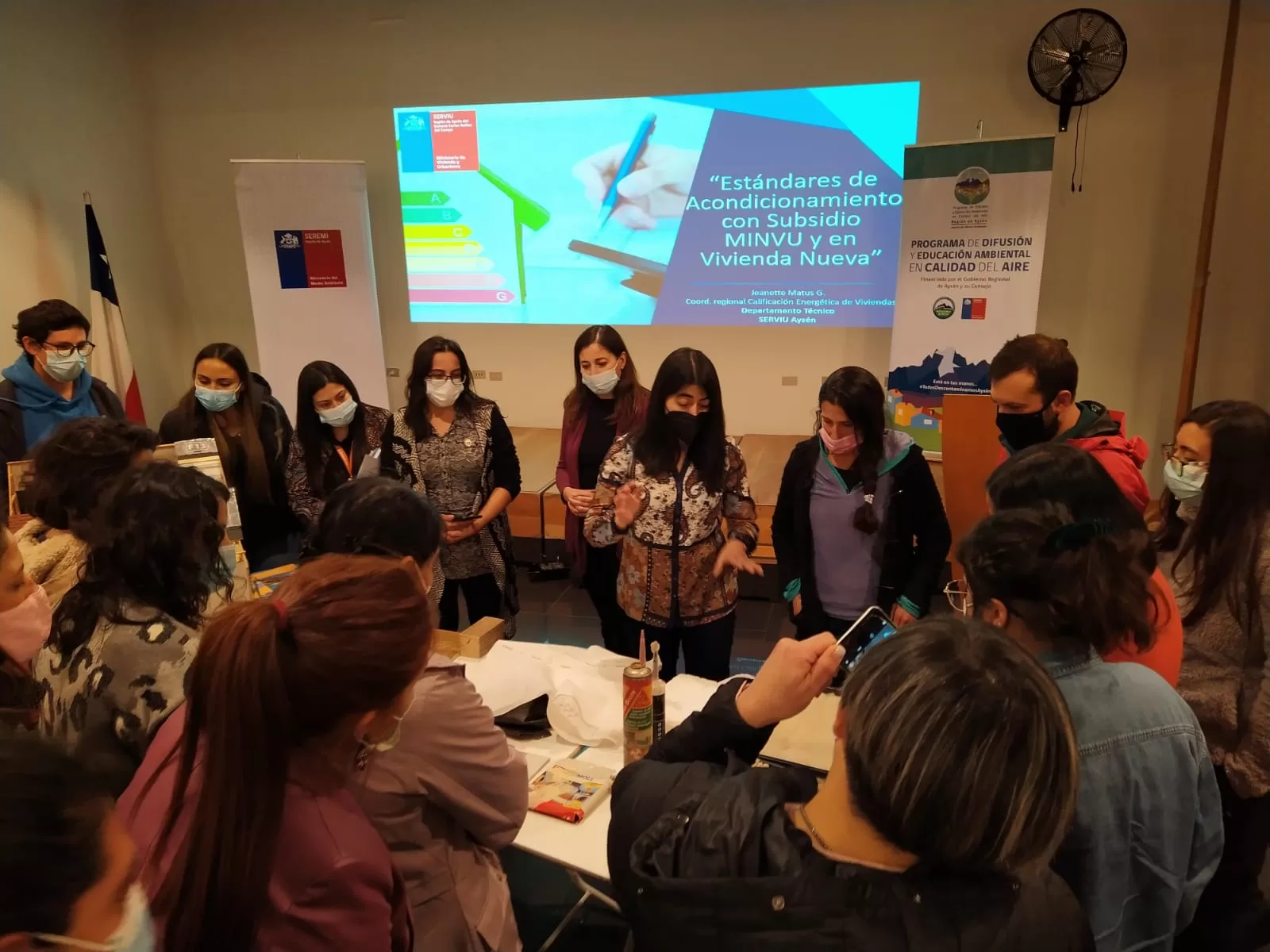 Los contenidos abordados en la exhaustiva jornada incluyeron la presentación “Plan de Descontaminación Atmosférica de Coyhaique (PDA)”, a cargo de la profesional de la SEREMI del Medio Ambiente, Jimena Silva; “Contaminación del Aire: Un problema de salud pública que requiere una respuesta urgente” expuesto desde la SEREMI de Salud por Angie Bichara; “Matriz y Diversificación Energética Región de Aysén” por el profesional de la SEREMI de Energía Nicolás Carbone; “Acondicionamiento Térmico de Viviendas” por la Profesional MINVU, Natacha Pot; y “Educación Ambiental: Proceso Transformador para mejorar la Calidad Ambiental en nuestro Territorio” del profesional de la SEREMI del Medio Ambiente, Juan Luis Ríos.