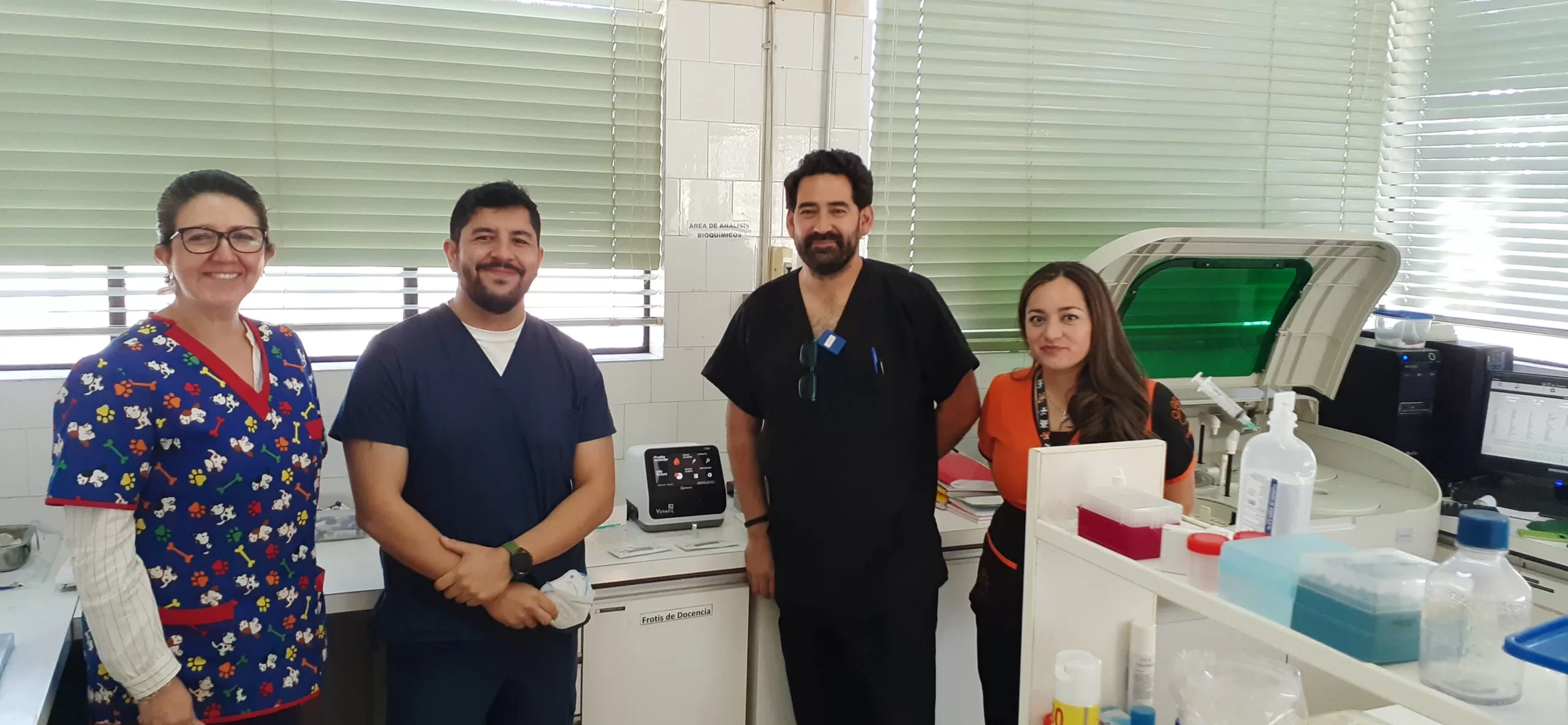 Foto equipo: Equipo del Laboratorio de Patología Clínica: Dra. Cristina Palma, Dr. Carlos Riquelme, Dr. Carlos Barra y Dra. Linda Castillo.