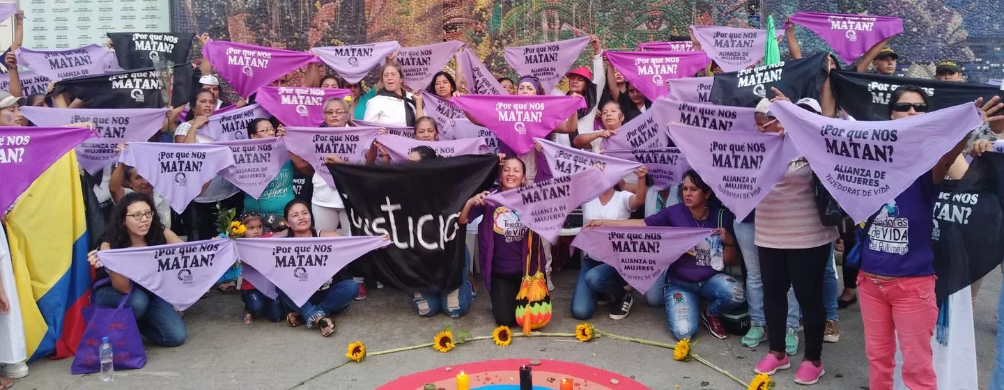 Como víctimas y sobrevivientes, las mujeres han tenido que asumir la carga familiar provocada por el desplazamiento o el hambre derivada de las fumigaciones que no solo erradican la hoja de coca, sino que destruyen otros cultivos y contaminan los ríos.