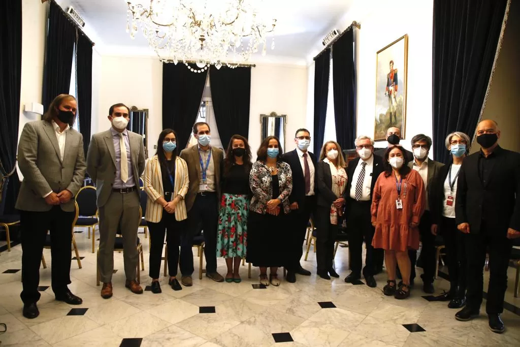 Conocer el proyecto de construcción de una nueva planta productora de vacunas. Ese fue el principal objetivo de la reunión que sostuvieron hoy en el Palacio de La Moneda los ministros de Ciencia, Tecnología, Conocimiento e Innovación, Flavio Salazar; de Salud, María Begoña Yarza; de Relaciones Exteriores, Antonia Urrejola, de Economía Nicolás Grau; y de Obras Públicas, Juan Carlos García, acompañados por José Miguel Benavente, Vicepresidente de la Corfo.