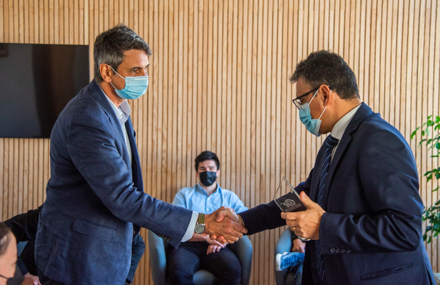 En esta reunión, la comitiva encabezada por el ex ministro de Ciencia, Andrés Couve, hizo entrega del galardón al Ministerio de Ciencia, Tecnología, Conocimiento e Innovación como gesto de reconocimiento por la labor realizada durante la pandemia.